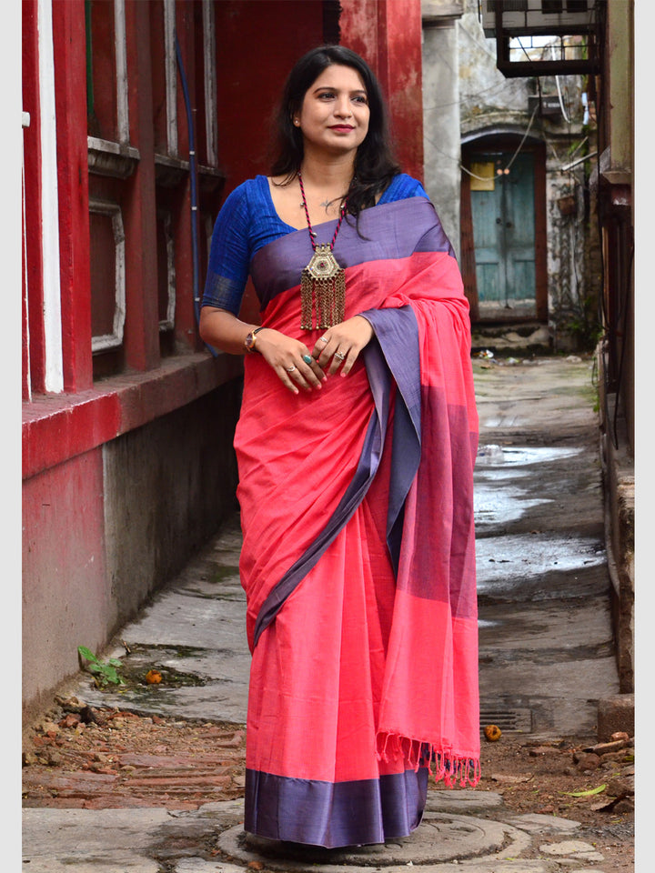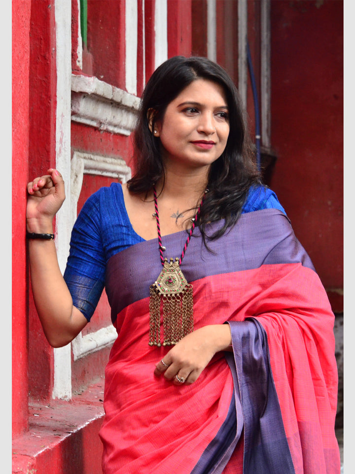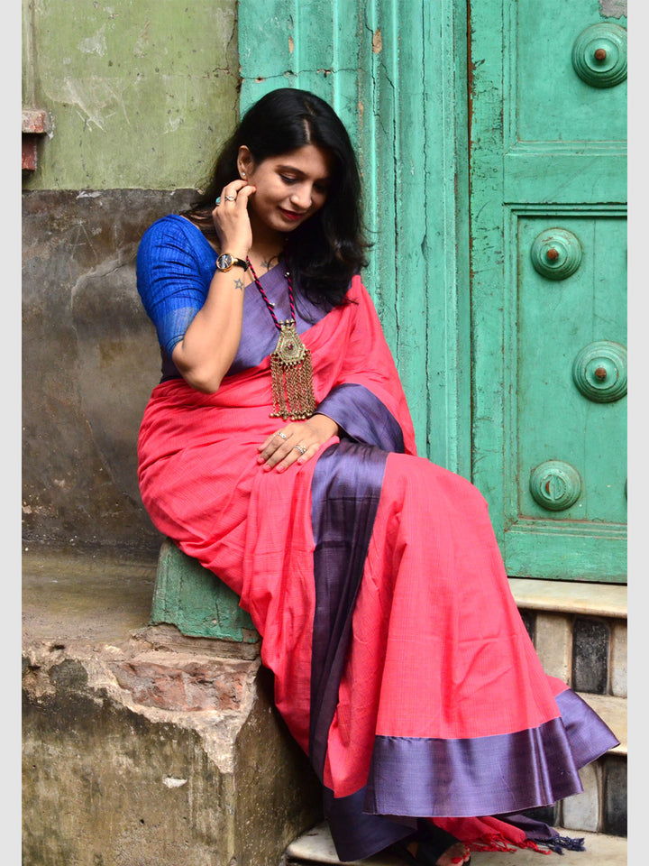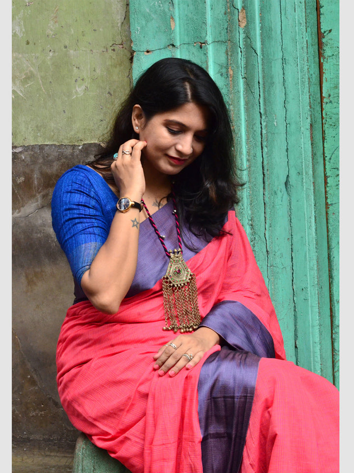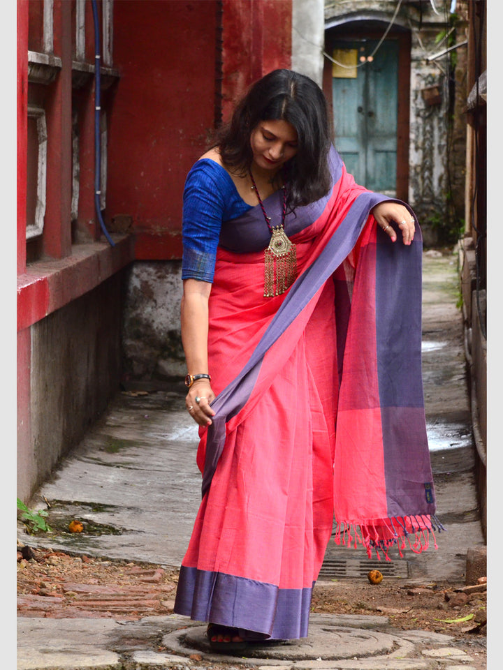 | Traditional Indian dyes in red, dark pink and indigo tend to rub. Avoid contact with white garments and accessories before a few washes settle the colour. |