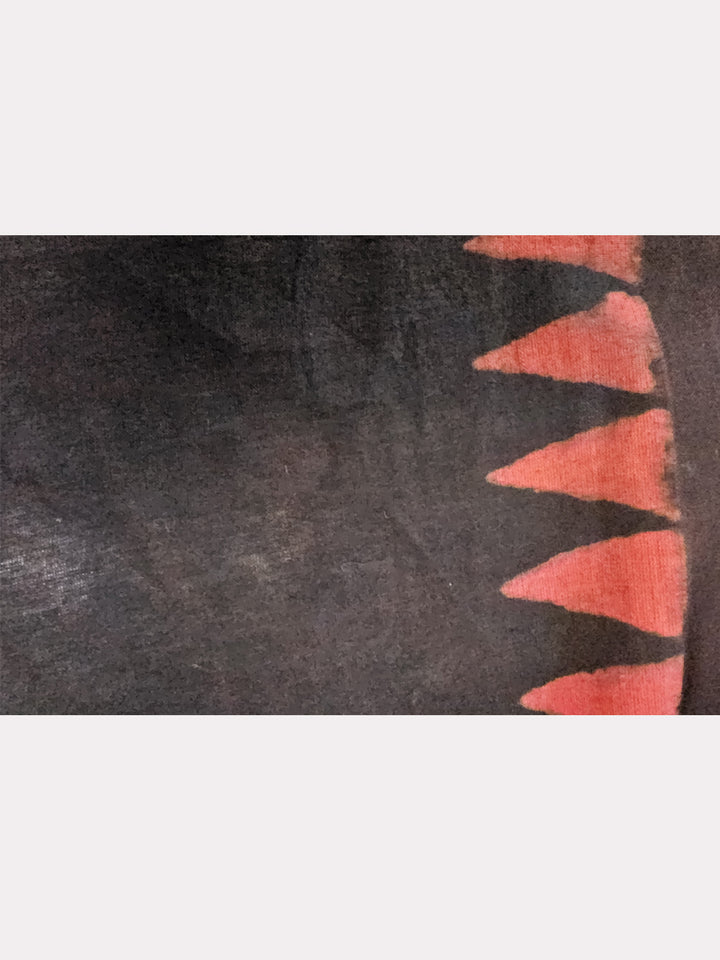 | Traditional Indian dyes in red, dark pink and indigo tend to rub. Avoid contact with white garments and accessories before a few washes settle the colour. |