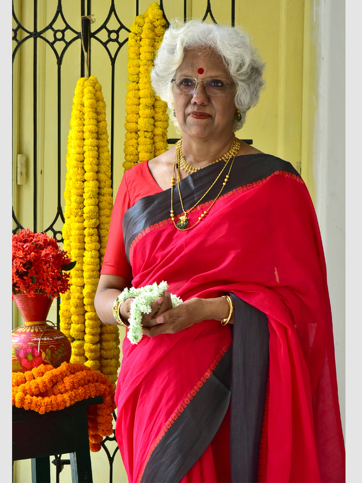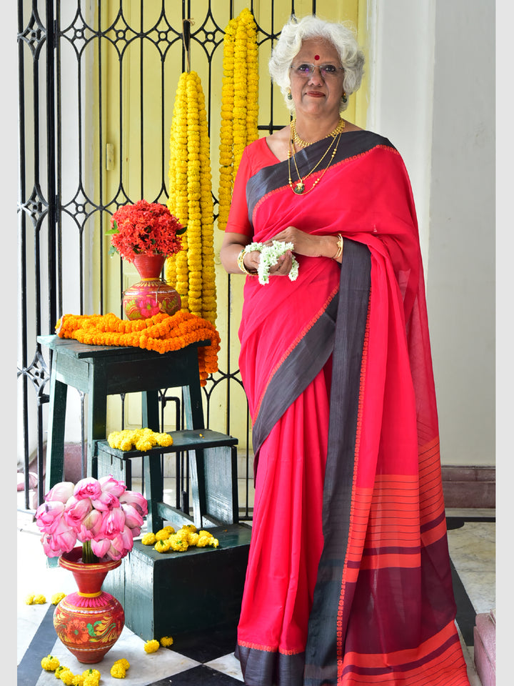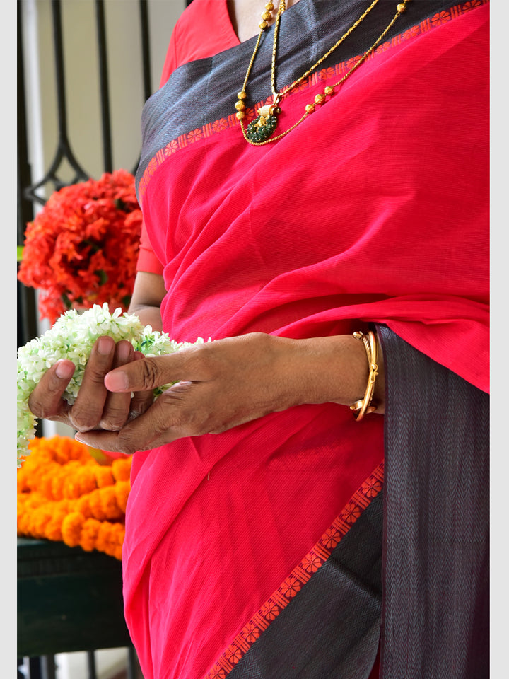 | Traditional Indian dyes in red, dark pink and indigo tend to rub. Avoid contact with white garments and accessories before a few washes settle the colour. |