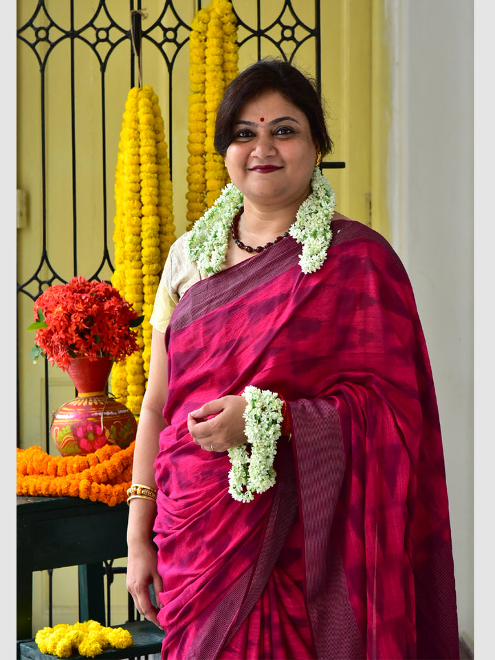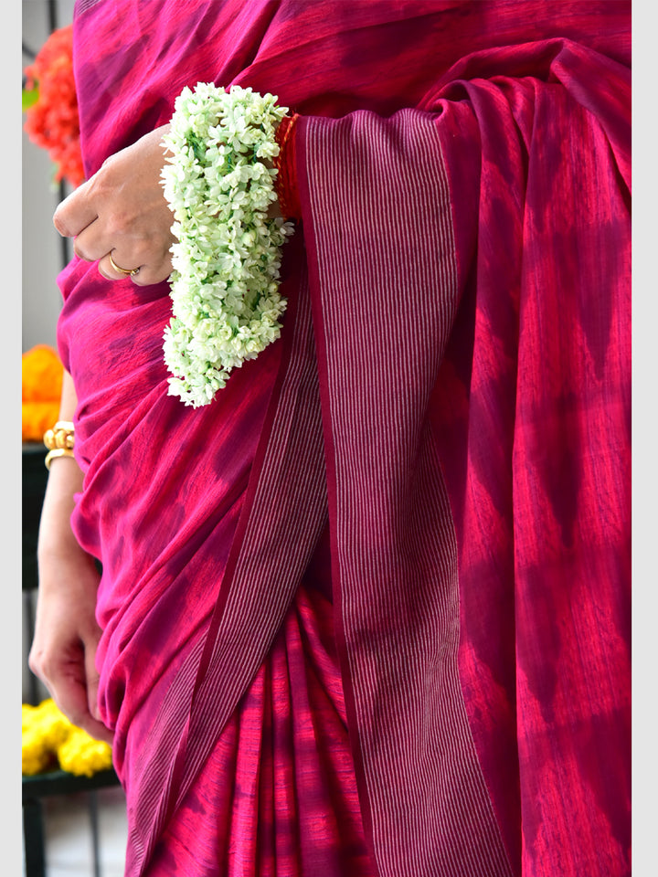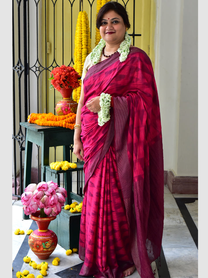 | Traditional Indian dyes in red, dark pink and indigo tend to rub. Avoid contact with white garments and accessories before a few washes settle the colour. |